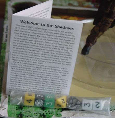 The rulebook has 16 pages. It starts out with the typical "Here's what Shadowrun is all about" intro and then goes into the rules for the game. (This is "Alpha Version Revised 11/25/02", by the way). I'm not going to copy it all because that would make lawyers mad at me. :) Instead, I'll paraphrase." ![]()